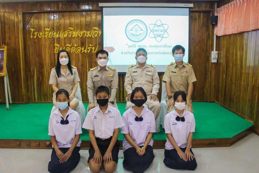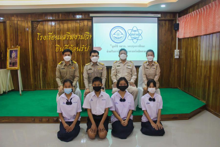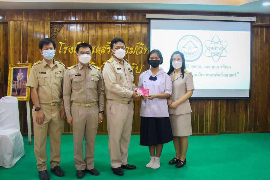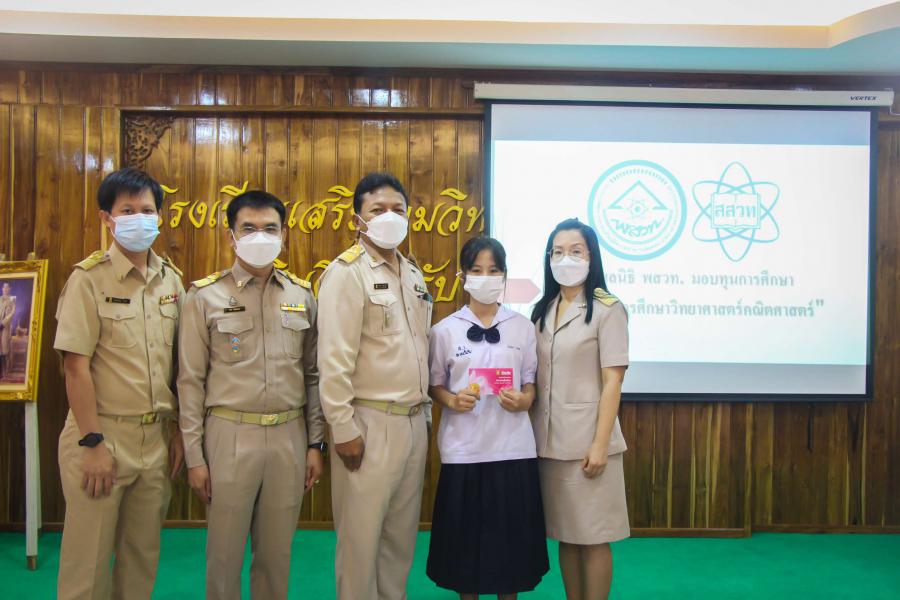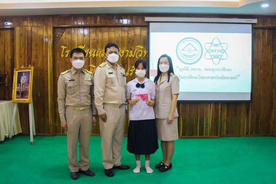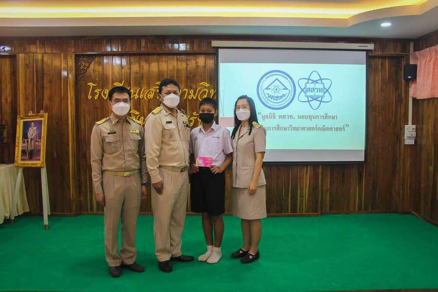 มูลนิธิ พสวท. ได้สนับสนุนทุนการศึกษาให้กับนักเรียนที่มีความสนใจด้านวิทยาศาสตร์ คณิตศาสตร์ โดยได้รับเกียรติจากนายสุมล สัญญเดช ผู้อำนวยการโรงเรียน พร้อมด้วยรองผู้อำนวยการโรงเรียน ครูที่ปรึกษา และครูผู้ดูแลโครงการทุนฯ เป็นตัวแทนมอบทุนการศึกษาให้แก่นักเรียนที่ได้รับทุน จำนวน 4 คน ประกอบด้วย เด็กหญิงสุมลรัตน์ วันดู, เด็กหญิงปิยธิดา ดาดาษ, เด็กชายคมกริช ทาอาสา และเด็กหญิงชลธิชา วงศ์มา นักเรียนชั้นมัธยมศึกษาปีที่ 1/1 ณ ห้องประชุมชงโค วันที่ 27 ธันวาคม 2564 S:0