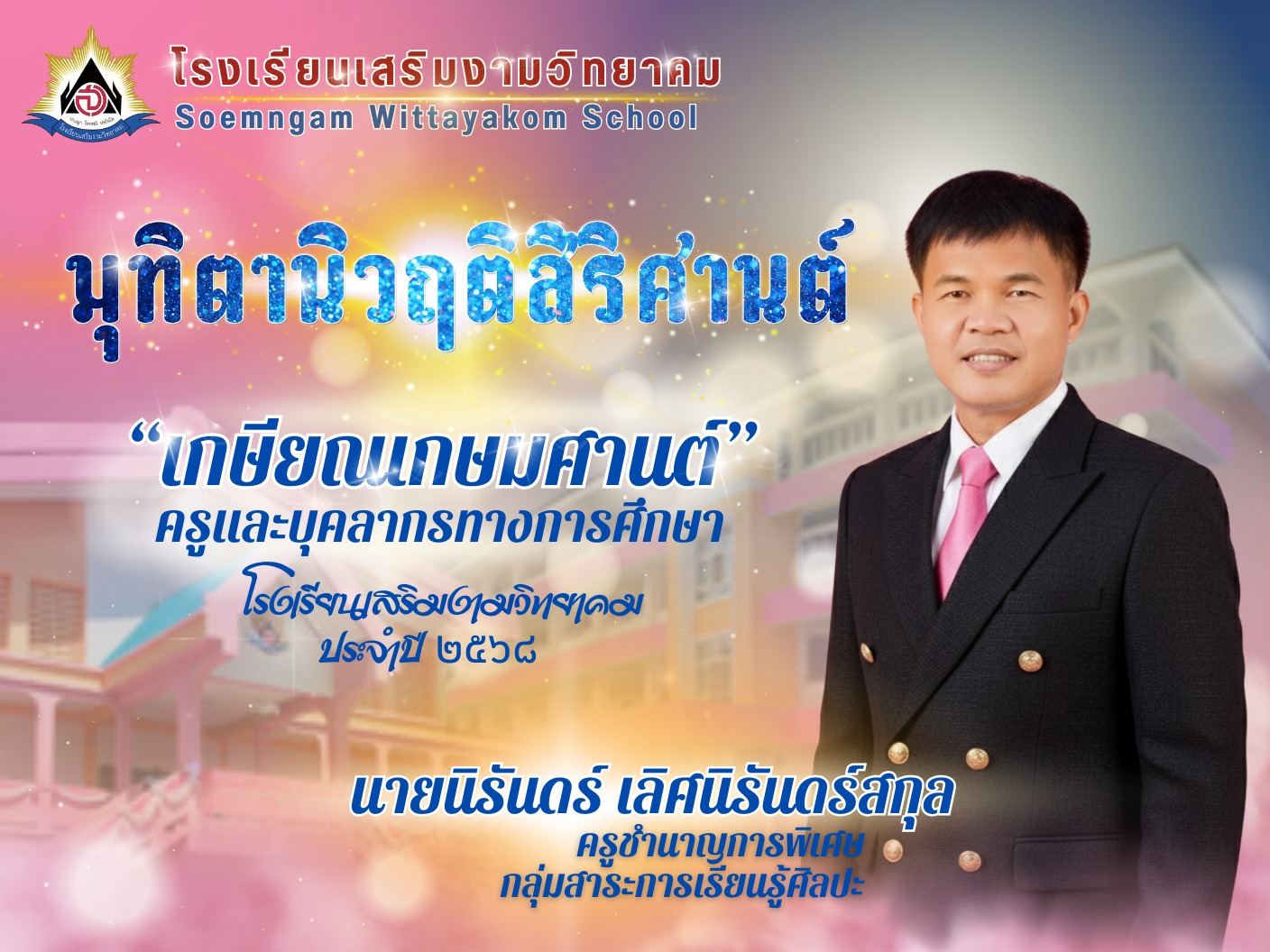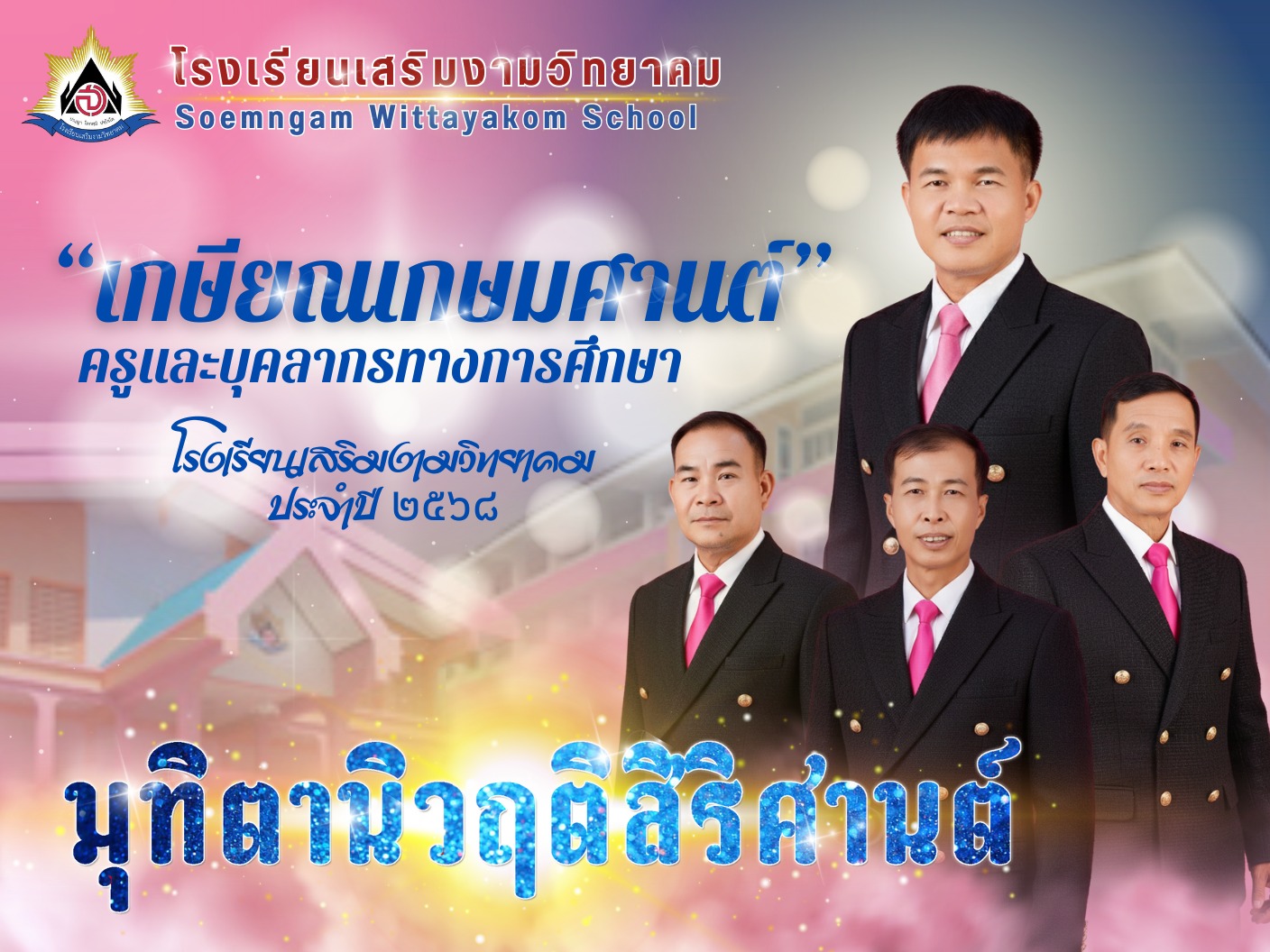 ด้วยจิตแห่งความกตัญญู โรงเรียนเสริมงามวิทยาคมขอแสดงความเคารพ ขอบคุณ และสดุดีแด่ผู้เกษียณทุกท่าน ที่ได้ฝากร่องรอยแห่งคุณงามความดีไว้ในหัวใจศิษย์และชุมชนการศึกษา ขออำนวยพรให้ทุกท่านก้าวสู่เส้นทางชีวิตใหม่ด้วยความสุข ความสงบ และความภาคภูมิใจดุจแสงทองแห่งความสำเร็จที่จะส่องประกายตราบนิรันดร์